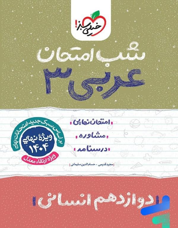 ویژگی های کتاب شب امتحان : این کتاب از ۴ قسمت اصلی تشکیلی شده است ۱. آزمون های نوبت اول : شامل ۲ ازمون طبقه بندی شده همراه با نکات مشاوره ای و ۲ ازمون بدون طبقه بندی ۲. آزمون های نوبت دوم : شامل ۴ ازمون طبقه بندی شده همراه با نکات مشاوره ای و ۴ ازمون بدون طبقه بندی ۳. پاسخ نامه تشریحی آزمون ها: این بخش کاملا تشریحی و اموزش رسیدن به پاسخ در هر ۱۲ آزمون کتاب می باشد. ۴. درس نامه کامل شب امتحانی : برگ برنده کسانی که شب امتحانی هستند تازه میخواهند با مطالعه قواعد خودشان را برای امتحان آماده کنند.
